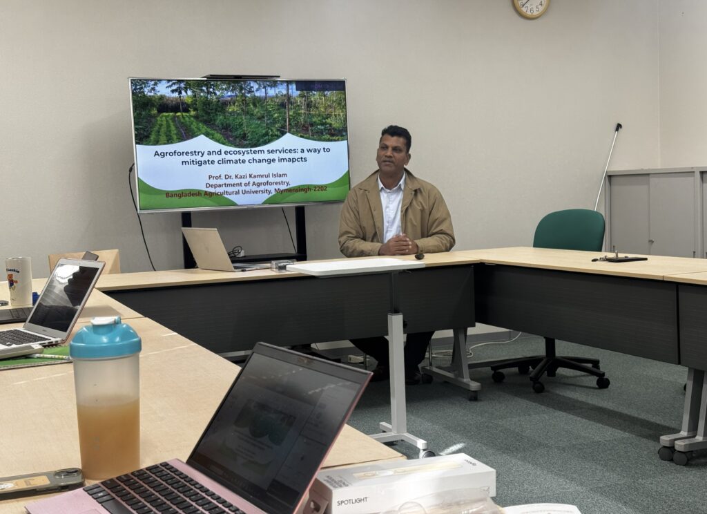2026年1月初めから3月初めまでの約2か月間、バングラデシュ農業大学の Kazi Kamrul Islam 教授を、日本学術振興会(JSPS)の招へい研究員として九州大学に受け入れる予定です。Kazi Kamrul Islam 教授は、バングラデシュにおけるアグロフォレストリー研究の第一人者であり、多くの論文を執筆されています。Kazi 教授の訪日中は、共同執筆論文の作成を進めるとともに、スマート農業の実施地の訪問などを行う予定です。